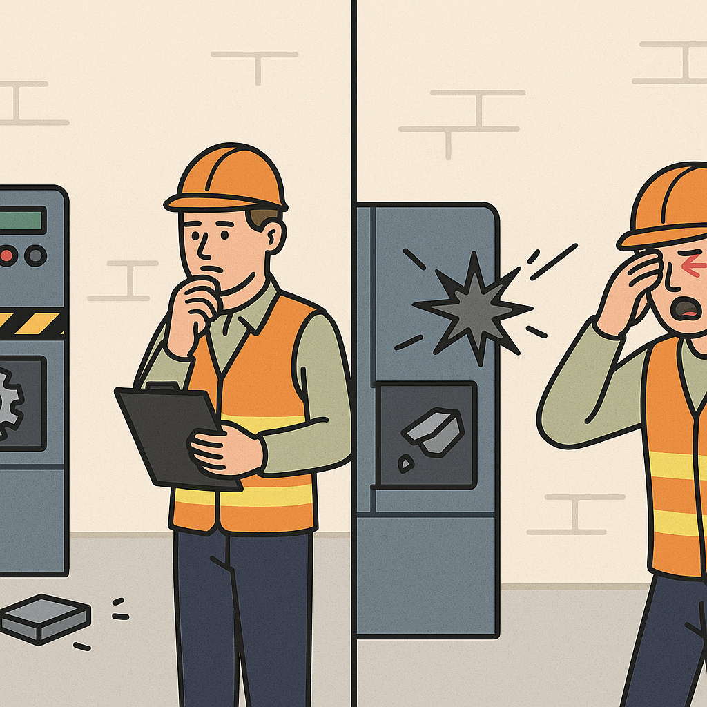 ● 사고 사례: 제조 현장에서 기계가 갑자기 멈추고 일부 부품이 파손되었으나, 다친 사람이 없었던 경우