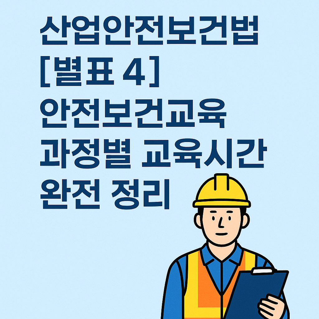 산업안전보건법 시행규칙 [별표 4] 안전보건교육 교육시간은 근로자·관리감독자·책임자·특수형태근로종사자별 교육과정·시간 기준을 명확히 제시합니다. 2025년 시행규칙(고용노동부령 제453호) 기준으로 완전 정리했습니다.