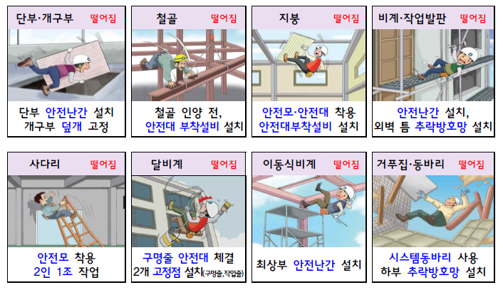 개구부·단부, 철골, 지붕, 비계, 사다리, 달비계, 이동식 비계, 거푸집·동바리...