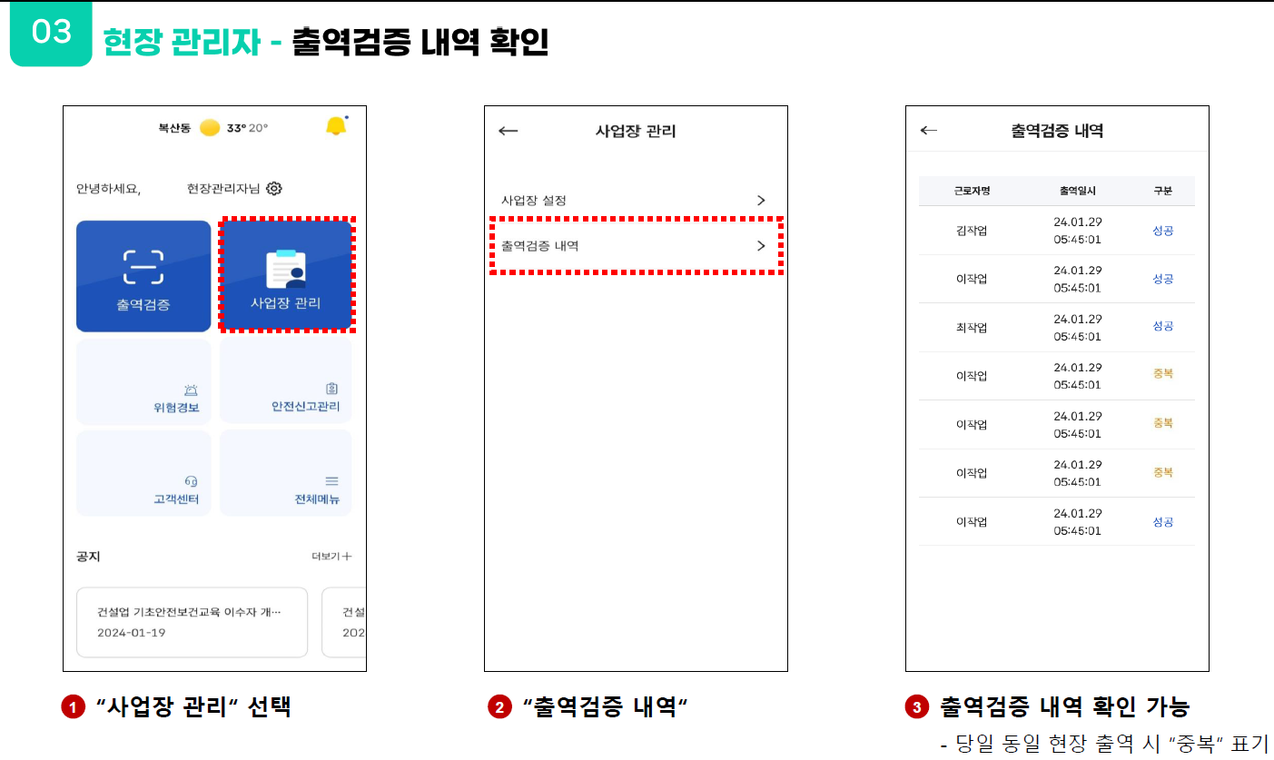 3. 현장 출역 등록