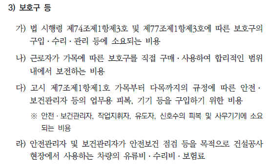 "안전모, 안전화, 보안경 같은 보호구도 산안비로 가능할까?"