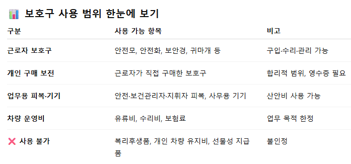 "산안비 보호구 사용 범위를 정리했습니다 안전모, 안전화, 보안경부터 차량 유지비까지, 2025년 최신 지침 기준으확인하세요."